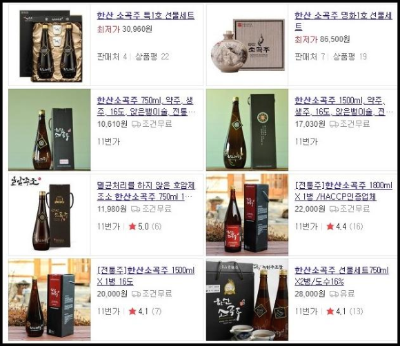 위 그림처럼 고급 약주인 소곡주 가격은 일반 막걸리 가격의 10배가 넘는 것도 있씁니다. 결국 막걸리도 고급화를 해야 부가가치가 높아지는 거겠죠. 최근 프리미엄 막걸리 종류가 늘어나서 다행스럽습니다.